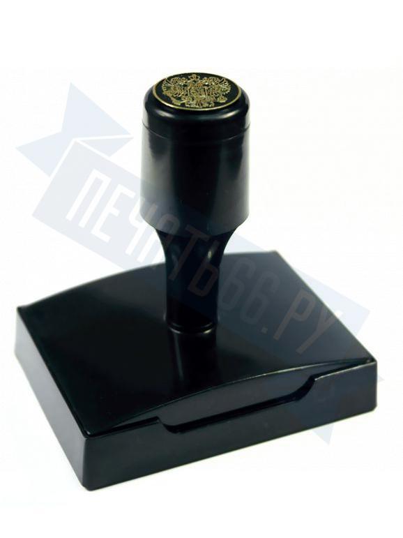 Ручная пластмассовая оснастка с крышкой для печати, штампа, факсимиле имеет клеевой слой для крепления клише печати.