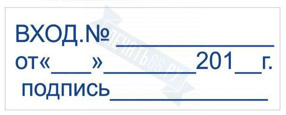 - Штамп ВХОД.№ ОТ____ДАТА __ ПОДПИСЬ___ на автоматической оснастке Trodat 3912 размером 47 х 18мм по цене 1698 рублей и еще 84 вида штампов со стандартными словами