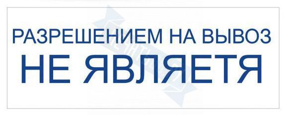 - Штамп РАЗРЕШЕНИЕМ НА ВЫВОЗ НЕ ЯВЛЯЕТСЯ на автоматической оснастке Trodat 3912 размером 47 х 18мм по цене 1698 рублей и еще 84 вида штампов со стандартными словами